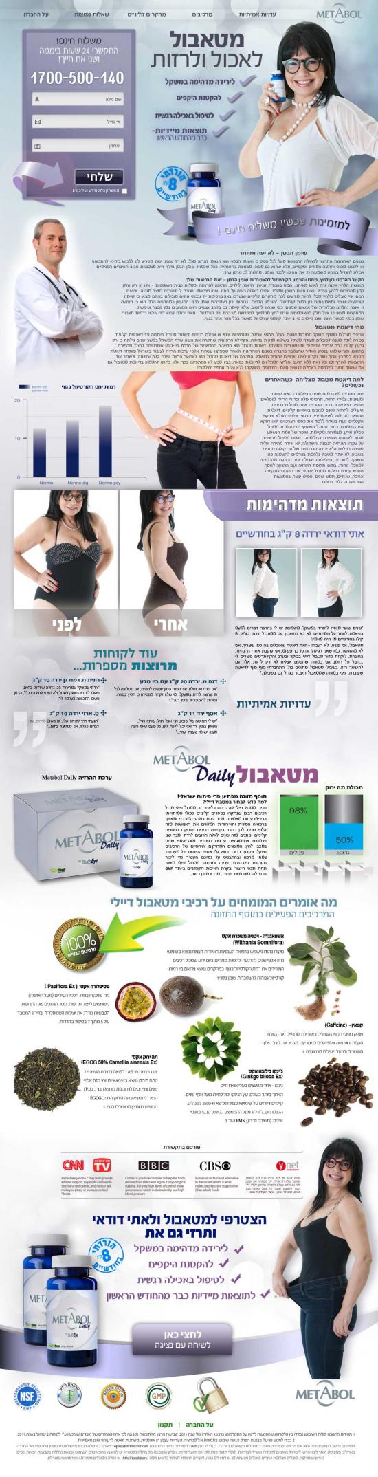 קופי: מטאבול לאכול ולרזות קונספט: אתר מכירה לדיאטת מטאבול כאשר אתי דודאי כפרזנטורית מסבירה ומראה איך ירדה 8 ק"ג בעזרת המוצר, בליווי טקסט מקצועי משכנע ובליווי תמונות המסבירות בבהירות ובמהירות לקהל היעד על היכולות והבטיחות של המוצר. metabol.co.il
