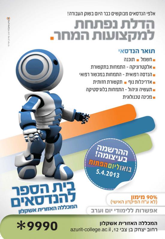 בית הספר להנדסאים מוצר: מודעה - כרטיס מתנה קופי: הדלת נפתחת למקצועות המחר. קונספט: תדמית עכשיות עם מסר עתידני לרוצים ללמוד מקצועות טכנולוגים