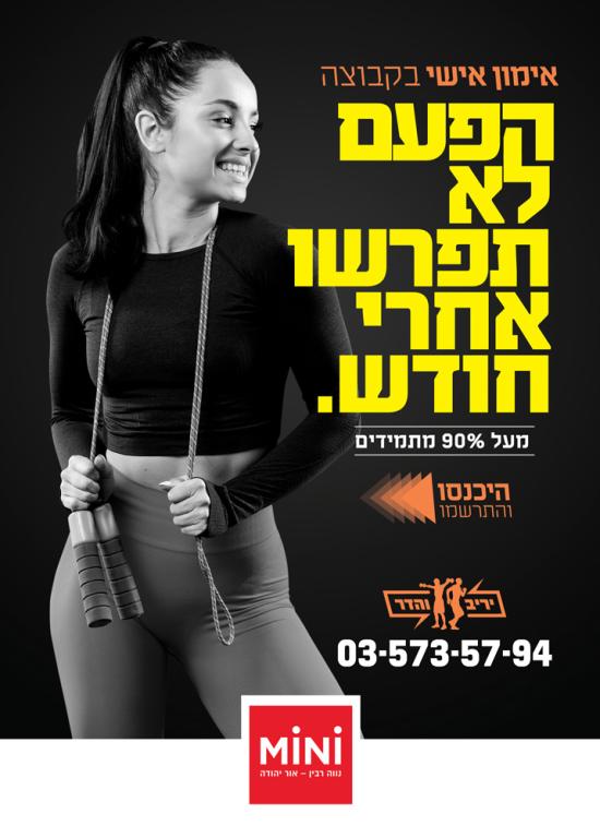קופי: הפעם לא תפרשו אחרי חודש קונספט: שילוט חוצות - חדר כושר הנותן אימון אישי בקבוצה, ניצול החסרון הגדול של חדרי הכושר הגדולים והפיכתו ליתרון אצל הלקוח