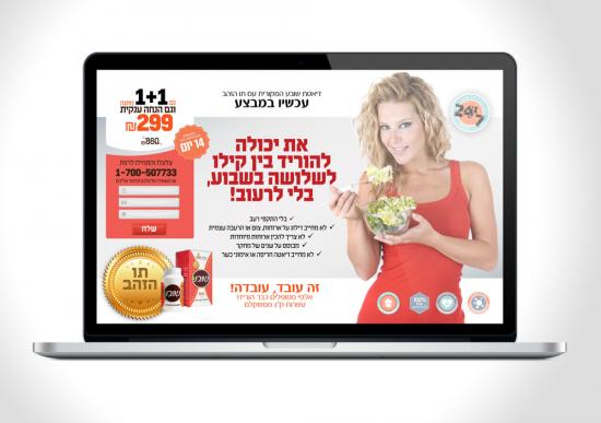 מוצר: עמוד נחיתה    קופי: את יכולה להוריד קילו בשבוע בלי לרעוב    קונספט: מוצר החוזר לשוק אחרי תקופה שלא פירסם, החדרה מסיבית על ידי הנחה אטרקטיבית, תוך שימוש בכל הדרכים לשכנוע על בטיחות השימוש במוצר